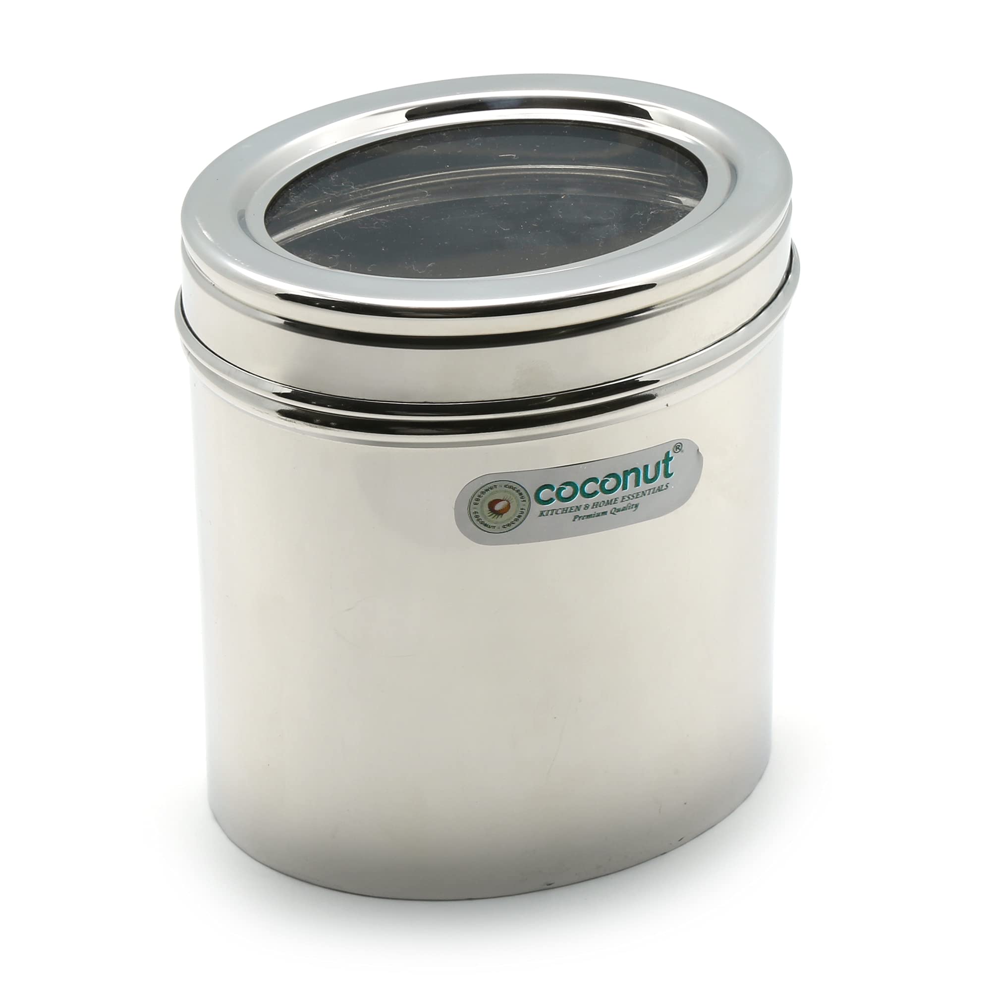 Coconut is range of innovative and quality products for Home and Kitchen. Crafted from High-Grade Stainless Steel which will not crack or rust. Container have enough Deep Space for storing Edibles Grains Snacks etc. Compaq size makes it easy to store in kitchen cupboards. Easy to clean and wash they have very exotic silver shining. It can easily be Handled and easy to cleanUnbreakable with Mirror Finish.It is an essential product for kitchenware collections. Product Content : Coconut Stainless Steel E22 Oval Clipart C-thru. Product Dimension - Width -12 Cm Length - 9 & Height -16 Cm. Capaciy - 1000 ml