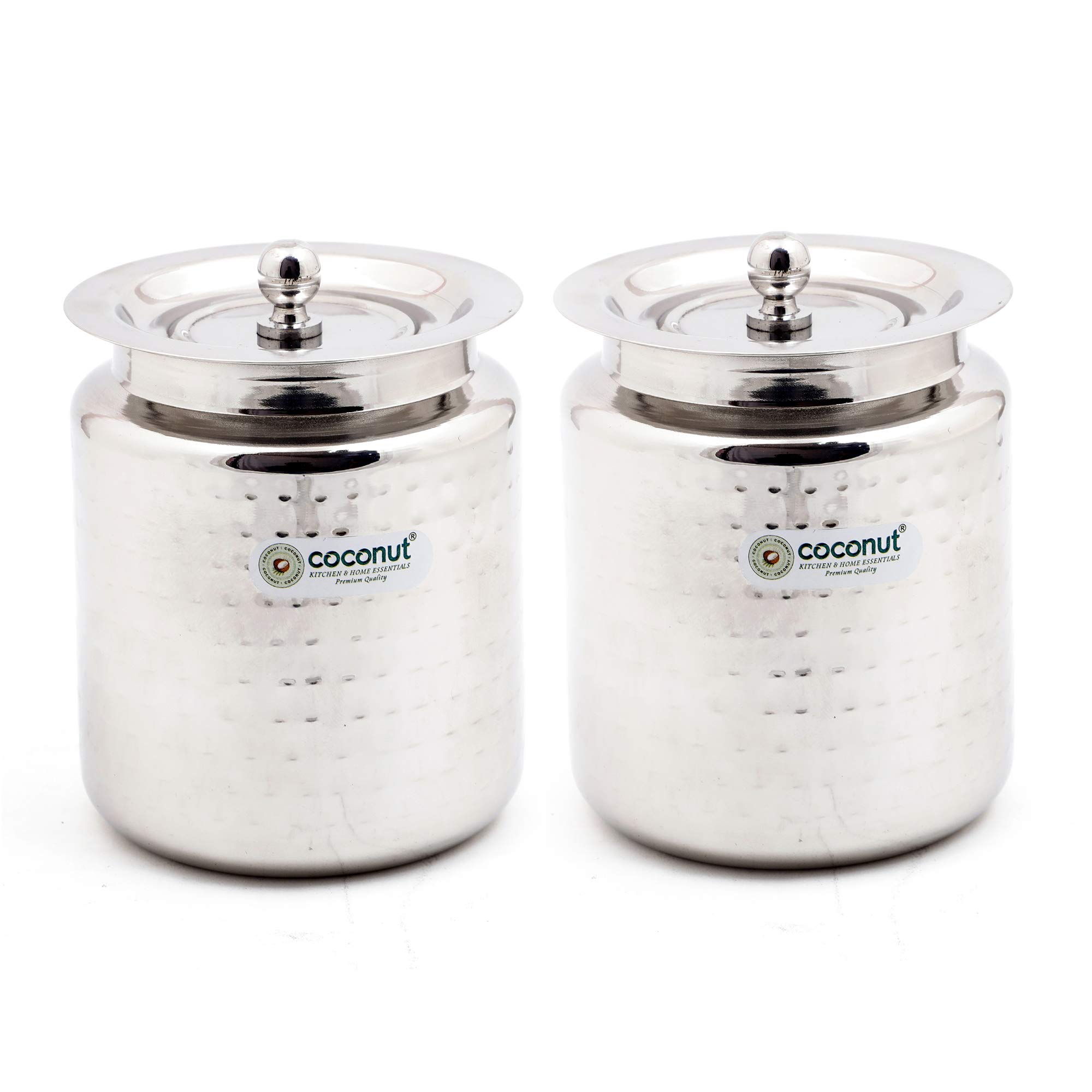 Coconut Stainless Steel Hammered Ghee Pot/Oil Pot with Lid - Set of 2 Pieces - 400 ML Each
