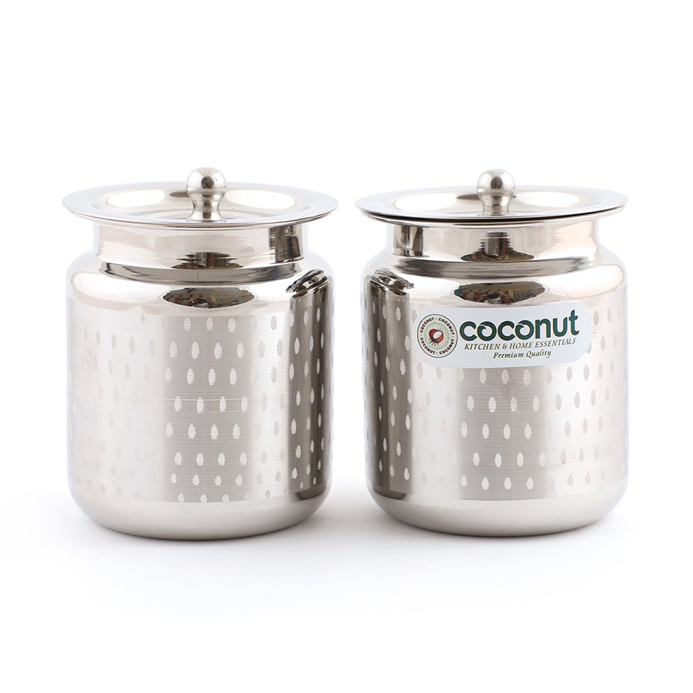 Coconut is a range of innovative and products for Home and Kitchen. This Stainless Steel Shower China Bharani Ghee Pot is made from 100% Food Grade Stainless Steel Material. It is highly durable and it is ideally used for storing Ghee Oil Sugar Milk Pickles Curds Etc. This is easy to Store in Kitchen cupboards. It gives an elegant look for the modern kitchens which comes with Shower Design and Glossy Mirror Mirror Finish. It Doesn't Rust Crack and Stain Proof Product. Product Content : SS Shower China Bharani Ghee Pot with SS Lids - Set of 2 Pieces Capacity - 850ML Each.