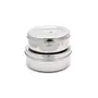 Coconut is range of innovative and products for home and kitchen. Through canister can used to store Puris Rotis Parathas Snacks Khakhara mukhwas dryfruits choclates buiscuits etc. This flat storage container is rust proof and hygienic. Made from 100% food grade stainless steel making it highly durable and resistance to corrosion. When not in use smaller container can be stacked inside bigger container saving lot of storage space.Container Set of 2 (Container 1 - 10.9 Inches Width & 3.3 Inches Height Container 2 - 11.4 Inches Width & 3.5 Inches Height respectively)