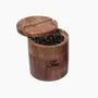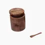 Creation India Craft Wooden Salt Sugar Coffee & Tea Jars with Magnetic Lid & Wooden Spoon Round Salt Container Condiment Storage Jar Kitchen Spice Storage Jar - Mango Wood Crafted (Tea Jar)