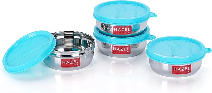 HomeKitchenContainersJars & ContainersHAZEL Air Tight Containers for Storage | Stainless Steel Storage Containers for Kitchen Airtight | Leak proof Container for Kitchen Storage Set of 4, 150 ML Each