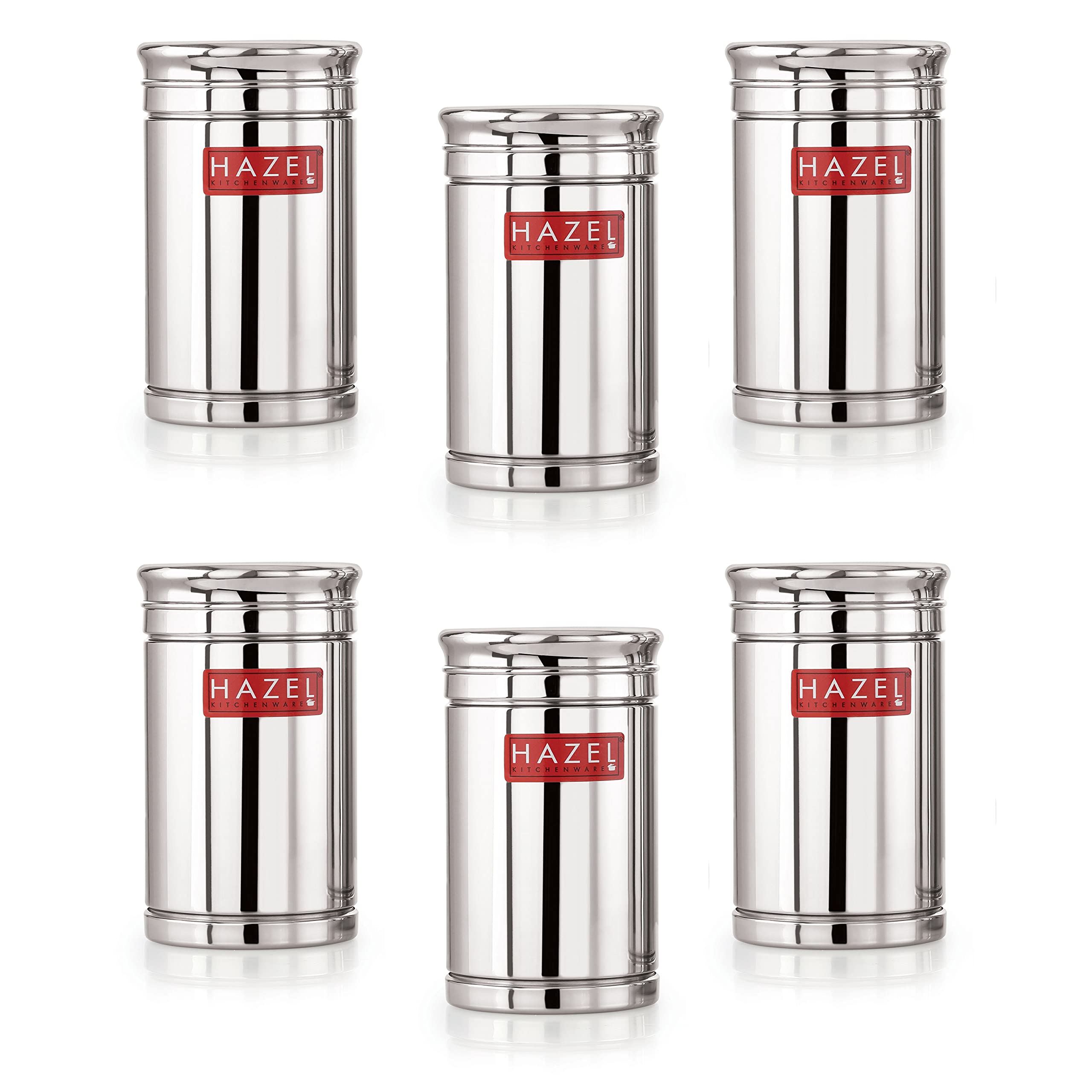 HAZEL Stainless Steel Container Set | 800 ml Set of 6 Steel Container for Kitchen Storage Set | Air Tight Containers for Kitchen Storage | Ideal for Storing Rice Cereal Pulse Snacks.