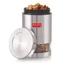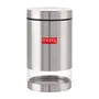 HAZEL Stainless Steel Containers Set For Kitchen Storage Transparent See Through Matt Finish Storage Jars Dabba Set of 6 1300 ML Each Silver Containers have a see through body looks like elegant and It is ideal for keeping a track of your food products. If you are looking for high quality & durable stainless steel storage Containers for storing Then we are offers you high standard stainless steel storage container which is perfect to meet your storing need. This highly durable stainless steel storage containers with stainless steel lid. Perfect for gifting purposes at weddings anniversaries. all your cooking essentials and see the contents of the jar through a visible transparent see through window and check supply levels of food inside containers. Made from high quality food grade stainless steel container which ensures strength quality and durability.The modern design see through canister container is perfect for your beautiful home and kitchen. Airtight lids ideal for keeping out moisture.Ideal for multipurpose storing Tea Sugar Coffee powder Spices Dryfruits Biscuits Candies Namkeen & Cooking Essentials.Wash Care Instructions:- Wash with lukewarm water Do not scrub with scrubber Not for hot filling. Avoid the use of abrasive scrubbers.Container Dimension : 10 x 10 x 19.25 cm (LxBxH) Diameter : 8.75 cm Weight : 330 gm Capacity : 1300 ML. 3 Month Manufacturer Warranty. This product is under 3 Months Warranty from the date of retail purchase against any manufacturing defects in material and workmanship. The Warranty does not cover damages resulting from accidents mishandling or tampering with the mechanism. Warranty valid against producing original bill endorsed by the seller.