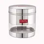 HAZEL Stainless Steel Transparent Wide Mouth See Through Container Silver Set of 3 750 Ml Containers have a see through body looks like elegant and It is ideal for keeping a track of your food products. If you are looking for high quality & durable stainless steel storage Containers for storing Then we are offers you high standard stainless steel storage container which is perfect to meet your storing need. This highly durable stainless steel storage containers with stainless steel lid. Perfect for gifting purposes at weddings anniversaries. Hazel is one of the leading brand in household products. Hazel designs products as per the market trends with maintaining standard quality. Hazel have wide range of kitchenware products like containers bottles baskets jugs. plates bowls trays scissors knives spoons topes pali palati pans pots cookers flasks thermos lunch boxes etc. Hazel use the high quality material such as food grade stainless steel plastic melamine ceramic etc. all your cooking essentials and see the contents of the jar through a visible transparent see through window and check supply levels of food inside containers. Made from high quality food grade stainless steel container which ensures strength quality and durability.The modern design see through canister container is perfect for your beautiful home and kitchen.Ideal for multipurpose storing Tea Sugar Coffee powder Spices Dryfruits Biscuits Candies Namkeen & Cooking Essentials. Wash Care Instructions:- Wash with lukewarm water Do not scrub with scrubber Not for hot filling. Avoid the use of abrasive scrubbers.Product Dimension:- 11.5 x 11.5 x 10 cm (L x B X H) Weight:- 220 Gms Diameter:- 11.5 cm Capacity:- 750 ML. (Rice Capacity:- 650 gm apx.)3 Months Manufacturer Warranty