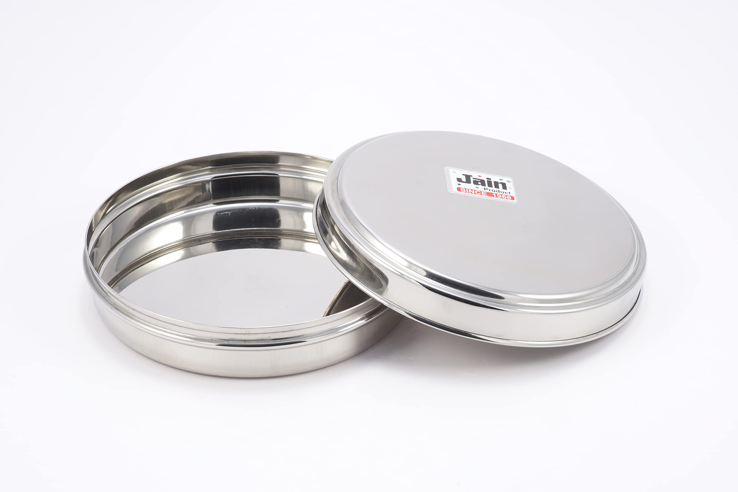 JAIN Stainless Steel Sleek & Flat Multipurpose Container | Food Grade Chapathi Dabba | Chocolate Box | 1 Pc - Dia - 15cm, 500 ML) | Food Storage Box | Durable & Leakproof | Ideal for Chapathi & Snacks