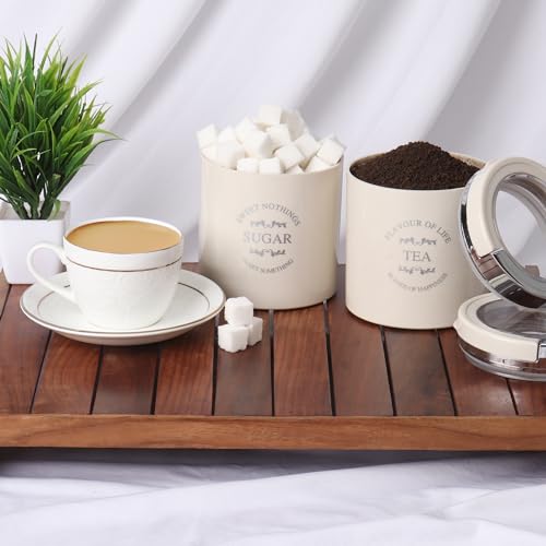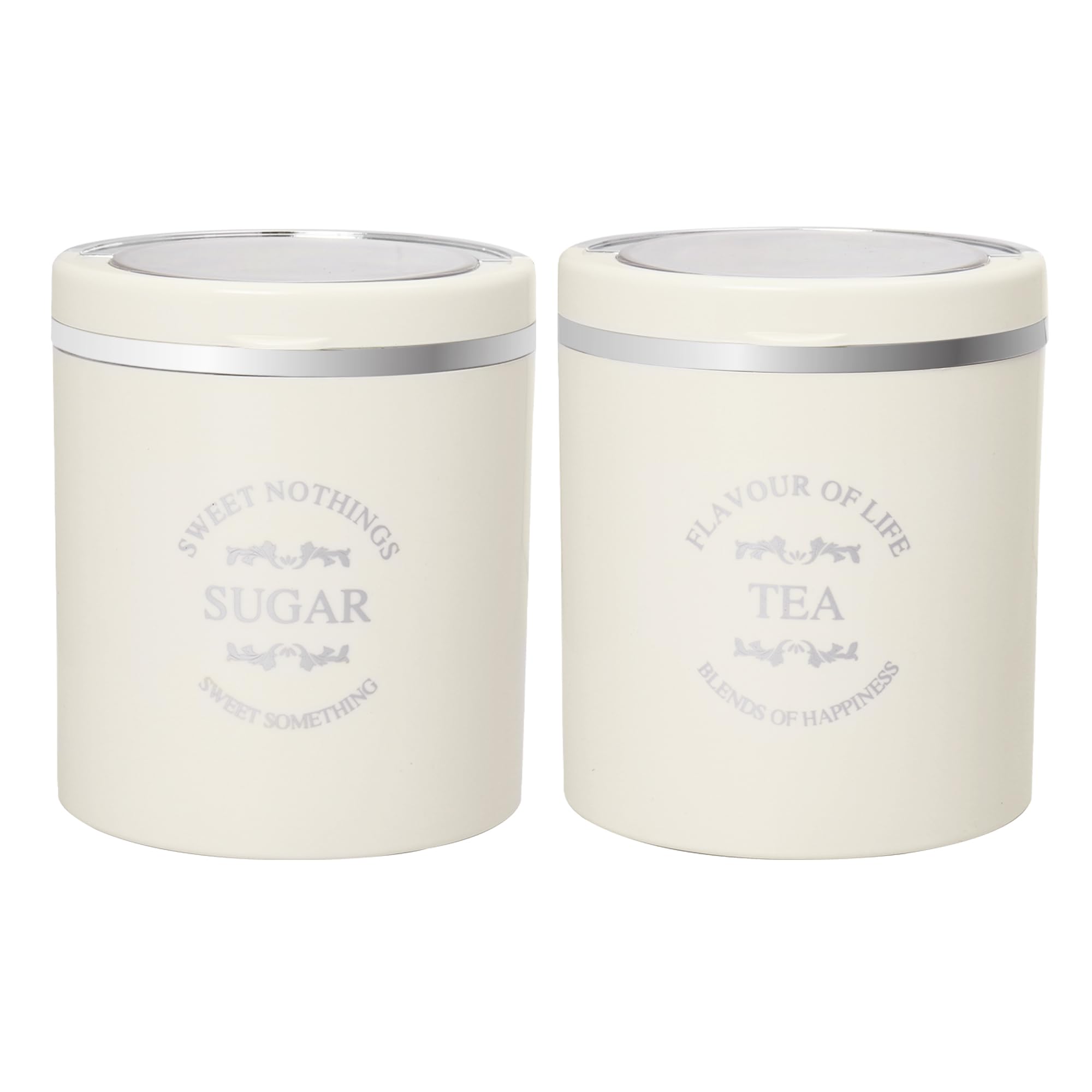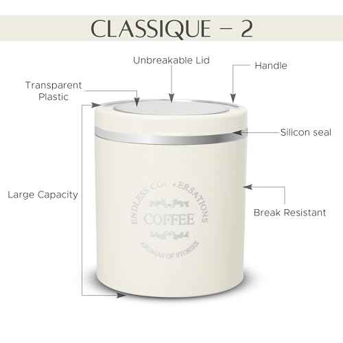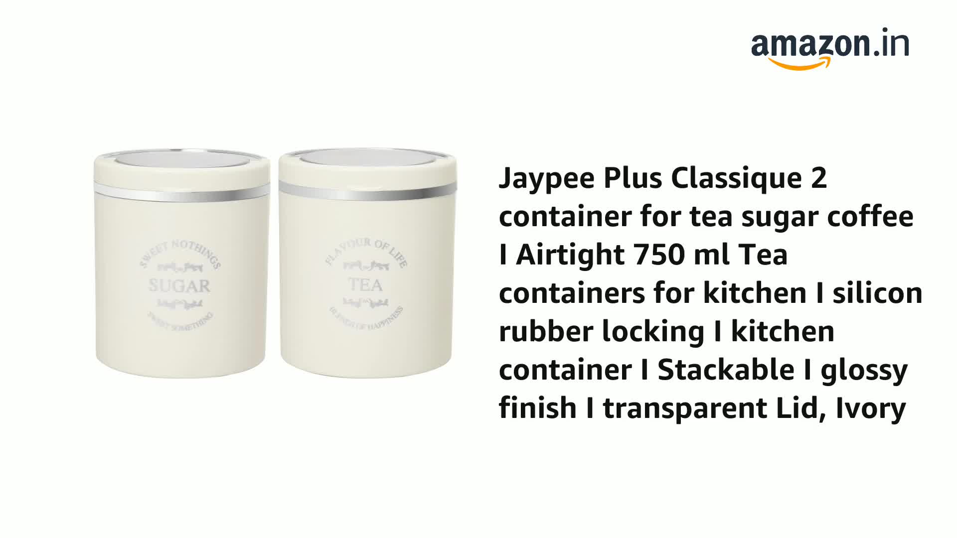Jaypee Plus Classique 2 container for tea sugar coffee I Airtight 750 ml Tea containers for kitchen I silicon rubber locking I kitchen container I Stackable I glossy finish I transparent Lid, Ivory