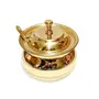 KC Golden Brass Multipurpose Ghee Pot/Pickle Container 400 ML with Embossed Designer Spoon