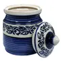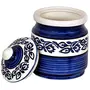 KHURJA POTTERY Blue Pottery Hand Paintaed Mughal Ceramic Cornichon Storage Jar for Sugar | 750 GR