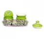 KHURJA POTTERY Pickle Jar Storage Container Chutney Serving Set with Tray(Green Black Circle) Condiment Set | Pickle and Chutney Jar Set for Dining Table