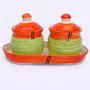 Made in India for an initiative of Aatam Nirbhar Bharat A Product with simple handle and detailed with Handpainted Glaze. Handmade and hand glazed with love from the interiors of India. They make the perfect addition to any kitchen and table spaces as art pieces displaying an exemplary glimpse of studio pottery from India. Those who love their food love their kitchen will definitely love this modern product. Best for serving casually or occasionally at one on Breakfast Lunch & Dinner time. Tip to bottom is 100% handmade with fine details. An ideal gift for housewarming party. Comes in a set of 2 with Tray. The product is lead free. The product is dishwasher & microwave safe.