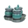 Elegantly style for your dining table with this set of Pickle Jars from KHURJA POTTERY This pair of Ceramic Pickle Jars is multipurpose and can be used to store pickles chutneys or mouth fresheners. A smart way to keep things preserved this will beautify your kitchen too. Beautifully shaped they are convenient to handle. Useful in kitchen Dining table etc.