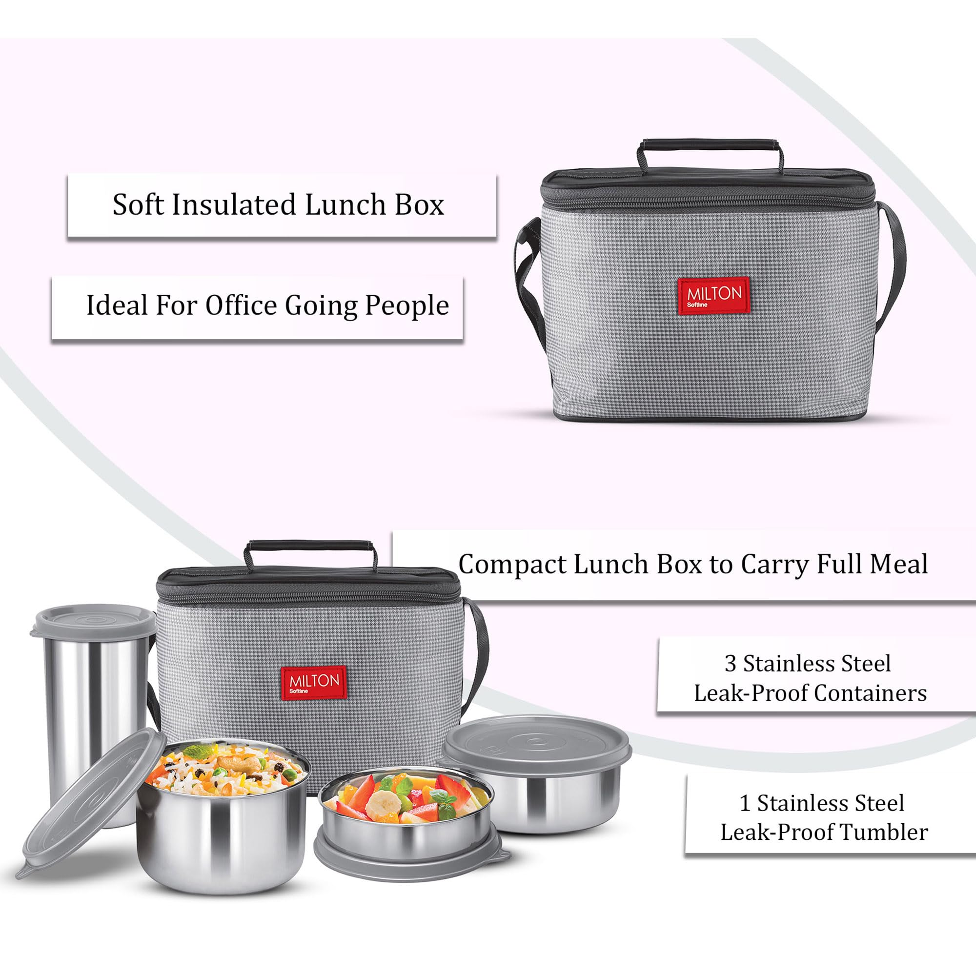 • Soft insulated Compact lunch box to carry full meal. Ideal for office going people