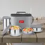 Introducing Steel Softline Tiffin series from the house of Milton. Delicious Combo is an ideal choice to carry home-made food in 100% leak-proof stainless steel containers. It comes with 3 stainless steel round containers along with a stainless steel tumbler. The outer jacket is made of finer quality and trendy fabric and high grade insulation that keeps contents hot and fresh for long hours. The stylish design and select colours of jackets make it a perfect meal companion.