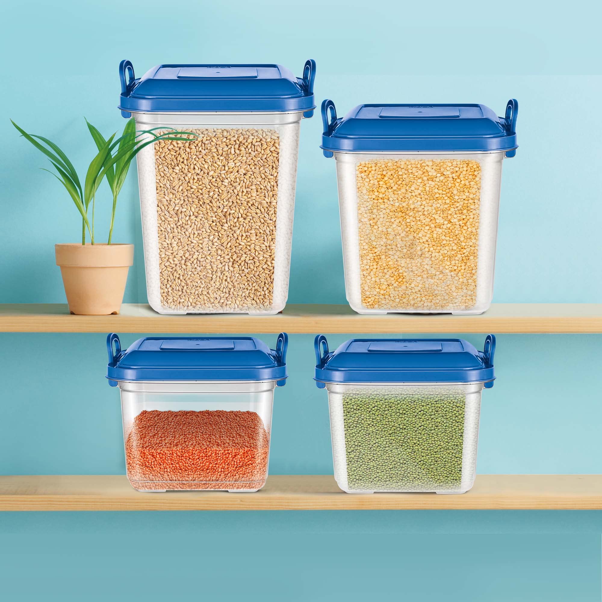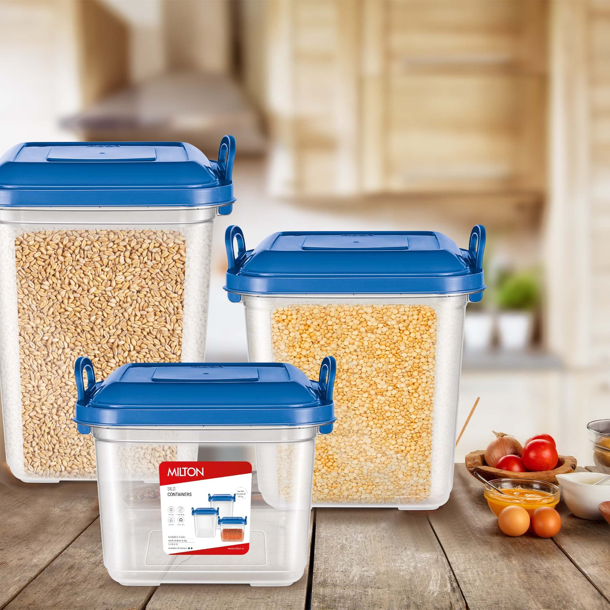 Milton Silo Plastic Storage Containers (15/20/25) Set of 3 (14.45 Litres, 18 Litres, 23 Litres), Blue | Storage Jar | Kitchen Organiser | BPA Free | Stackable | Modular | Nestable