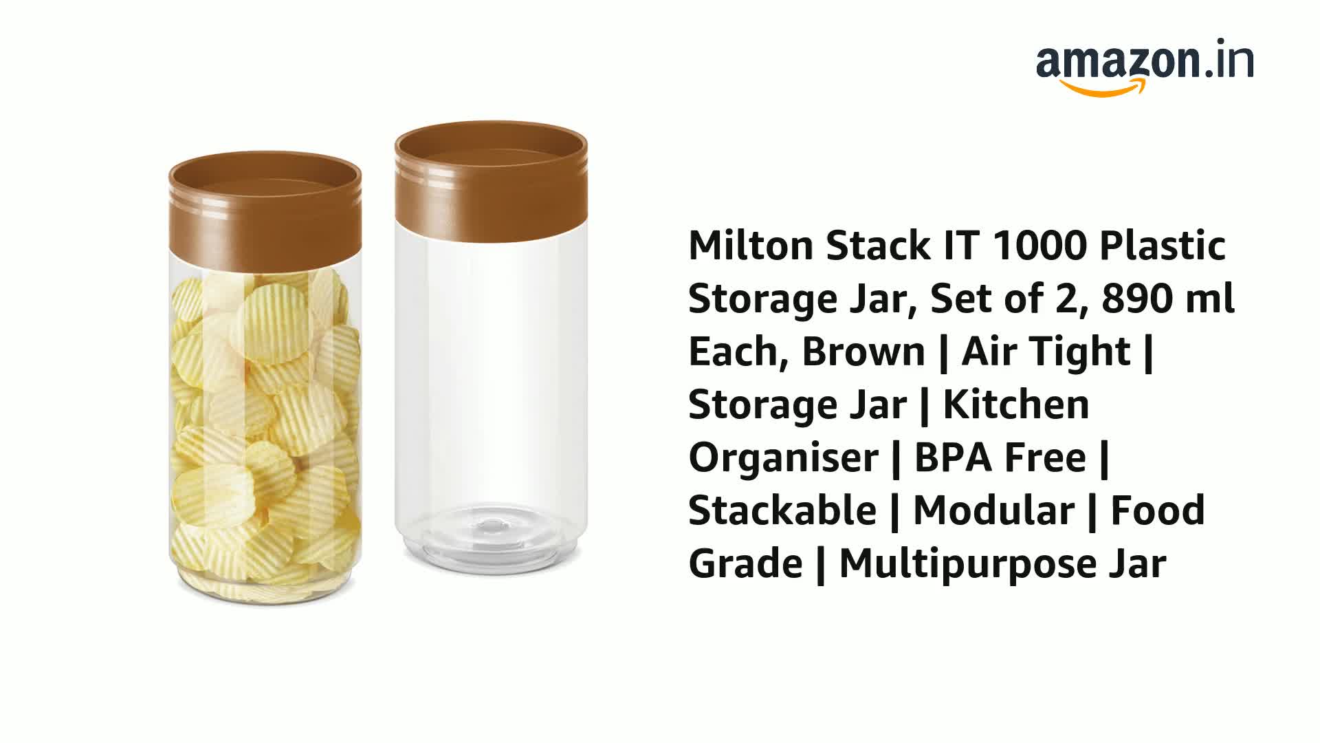 The new Stack-it-jars are the ultimate solution for all your kitchen storage needs. They are designed to considerable groceries in a small space with the stacking mechanism. The tall lid makes it easy to stack more jars over each other and thus optimize the kitchen space. The sleek design with the transparent body makes it a must have jar range for your kitchen cabinets. The transparency of jar helps in easy identification of the d content inside without having to open it. It is BPA Free Food Grade Air Tight. It helps you save space in your kitchen. An airtight lid keeps the food away from moisture that helps retain the freshness of food for a longer period. Multipurpose to cookies snacks food grains and dry fruits.