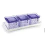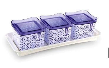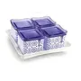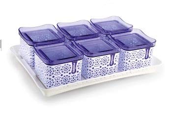 Nayasa Sofia Square containers is multipurpose set of 2346 airtight food storage containers with lids and a serving tray. Having a tea with crispy bites of biscuits or namkeen is something you love to do daily - be it a morning starter or evening snack. Airtight Storage Containers with tray in multi design is perfect for storing essential food ingredients such as Biscuits Dry Fruits Cookies Candies Nuts Snacks chocolates and many more. This Stylish and versatile container is made from 100 percent Food Grade plastic BPA Free and offers great durability. Best for your kitchen this Air tight container will keep the contents fresh for a long time. Ideal Usage is for keeping daily snacks to serve guests and for gifting purpose. Material :- Plastic Package Content :- Set of-2346 Piece Containers (540 ml) with Lid and 1 Piece TrayCare Instructions: :- Keep away from fire.Created By :- BANSAL GROUP