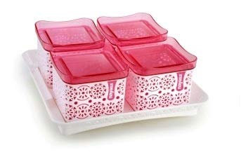 Nayasa Sofia Square containers is multipurpose set of 2346 airtight food storage containers with lids and a serving tray. Having a tea with crispy bites of biscuits or namkeen is something you love to do daily - be it a morning starter or evening snack. Airtight Storage Containers with tray in multi design is perfect for storing essential food ingredients such as Biscuits Dry Fruits Cookies Candies Nuts Snacks chocolates and many more. This Stylish and versatile container is made from 100 percent Food Grade plastic BPA Free and offers great durability. Best for your kitchen this Air tight container will keep the contents fresh for a long time. Ideal Usage is for keeping daily snacks to serve guests and for gifting purpose. Material :- Plastic Package Content :- Set of-2346 Piece Containers (540 ml) with Lid and 1 Piece TrayCare Instructions: :- Keep away from fire.Created By :- BANSAL GROUP