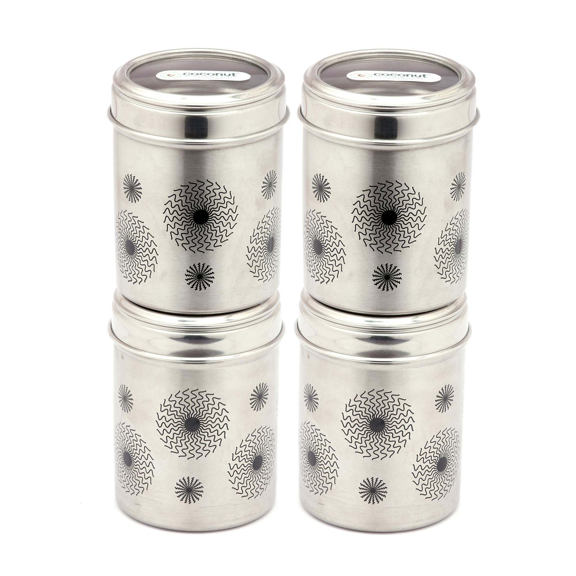 Coconut Stainless Steel Container/Storage/Deep Dabba/See Thru Glass Lid - Set of 4 (750ML Each) - Diamater - 10 Cm Each