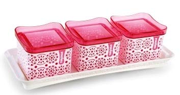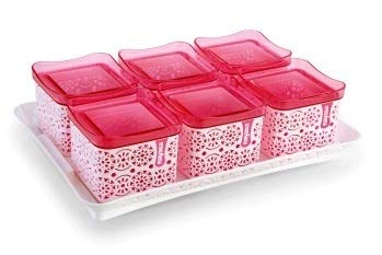 Nayasa Romano Plastic Dry Fruit Container Square by Bansal Group (540 ml, Pack of 4, Pink)