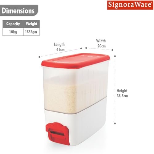Package Contents : Rice Dispenser Plastic Container (For Touch Free Rice and Pulses) 10Kg Set of 1 Red