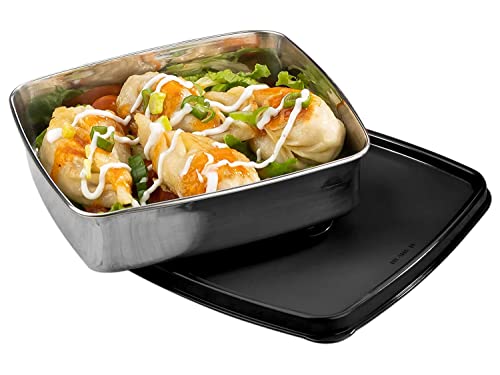 Signoraware Smart 'N' Slim Stainless Steel Container | Airtight & Leakproof | Microwave safe | Keeps food fresh | Great for School, office Or Picnic use | Useful for Leftovers ( 400ml | Black )