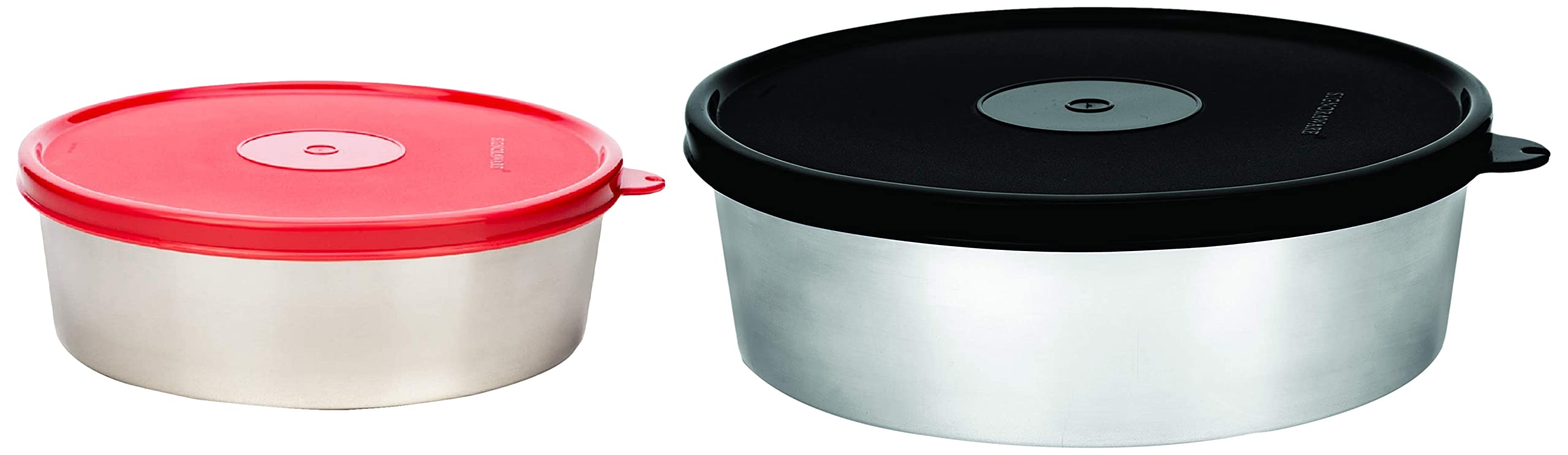 Signoraware Steel Papad and Chapati Box 1750Ml, Black & Signoraware Classic Stainless Steel Container, 900 Ml, Red