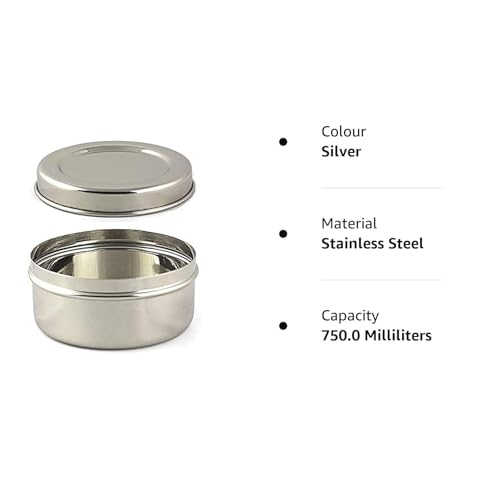 Vinod Stainless Steel Puri Dabba Storage Containers made from the finest stainless steel material which ensures strength quality and durability. This attractive mirror finishes flat canister can use to store Puris Rotis Parathas Snacks Khakhara mukhwas dry fruits chocolates biscuits etc. This flat storage container is rustproof and hygienic. All 4 Containers are of Different sizes which will fulfill all your Storage Needs Easy to clean and all are dishwasher safe. When not in use a smaller container can be stacked inside bigger containers saving a lot of storage space.