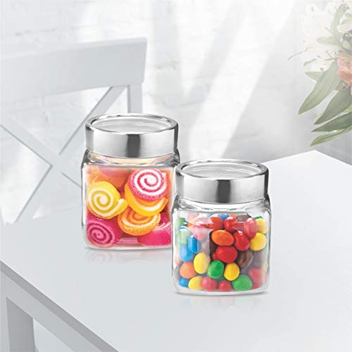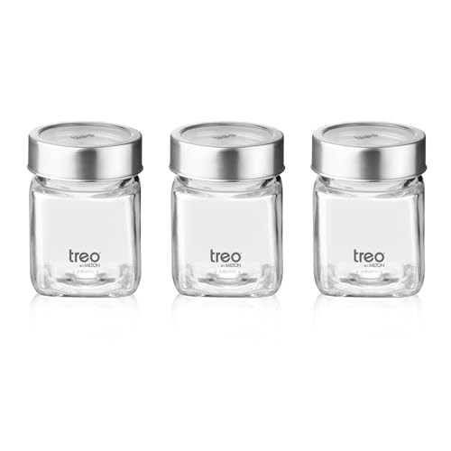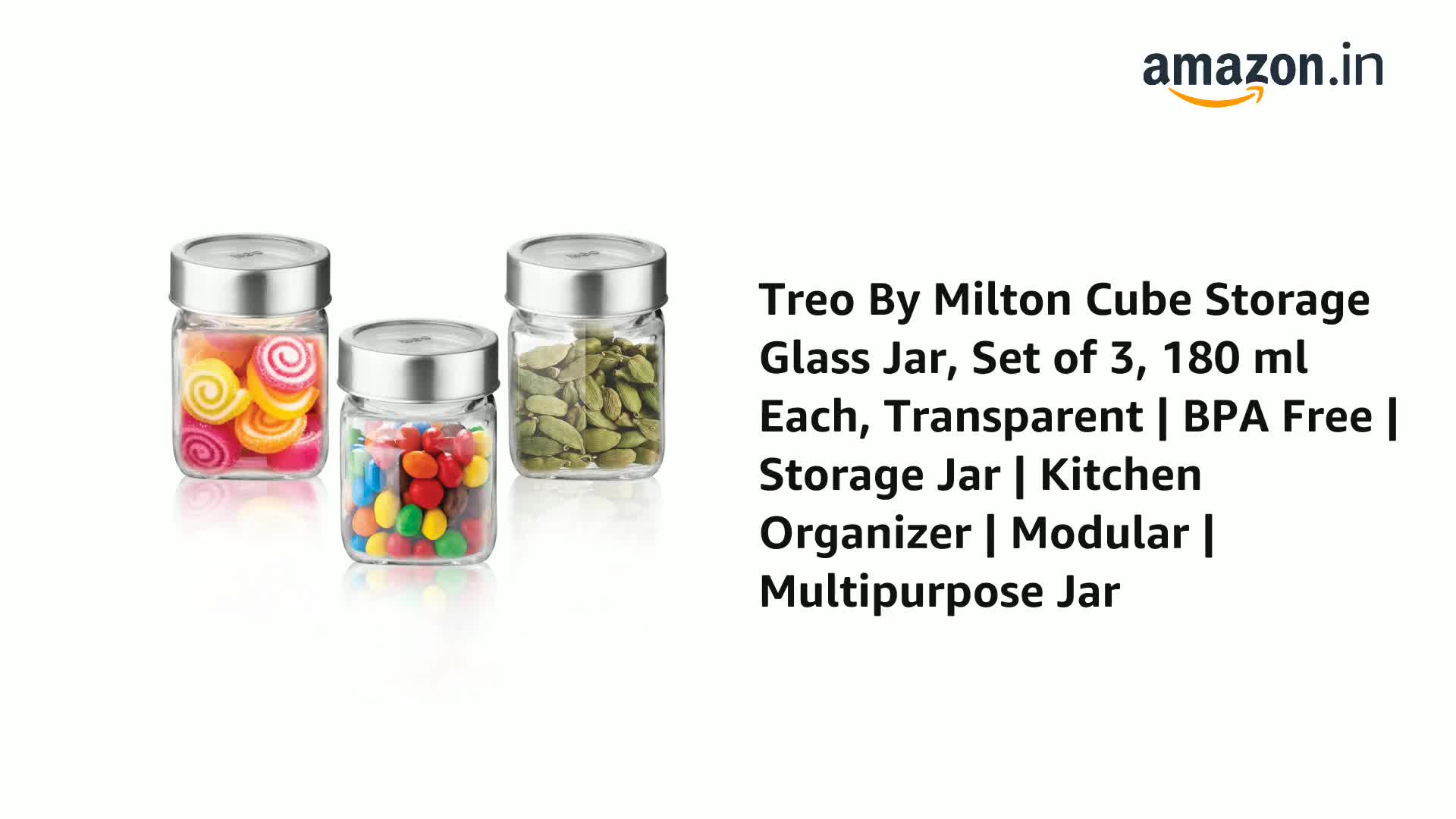 Treo by Milton Cube Storage Containers, Set of 3, Glass Jar with Air Tight Steel Lid, 180 ml each, Transparent Jars for snacks, Pulses, Masala, Pickles, Cereals, Cookies, Dry Food