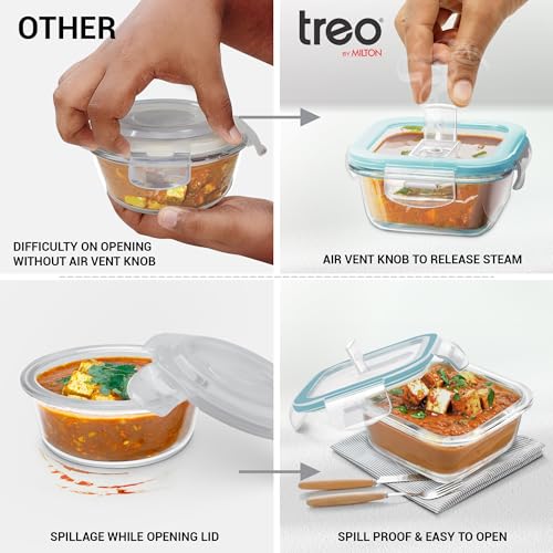 Treo By Milton Hi Borosilicate Clip Fresh Glass Container are made of High Borosilicate glass which makes it safe for use in microwave ovens freezers and refrigerators. Freedom to carry liquid dishes as these containers are leak proof. Glass containers are 100% food safe; it doesn't leach potentially harmful chemical unlike the other materials and are 100% BPA free. Due to its non-porous nature it doesn't absorb food & food smell stains or germs making them very easy to clean. The best part is that it retains crystal clarity even after repeated use and Safe to use in freezers & refrigerators. This glass container is versatile can be used as a meal preparation container lunch box variety of occasions and events baking dishes in the microwave/oven leftovers picnic storing food in the freezer for later use and as a glass storage container for organizing various food items. For any queries kindly reach customer care number as mentioned on the product packaging along with the proof of purchase.