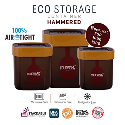 TRUEWARE ECO STORAGE HAMMERD 750ML,1000ML,1500ML(SET OF 9 PCS), Beige