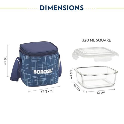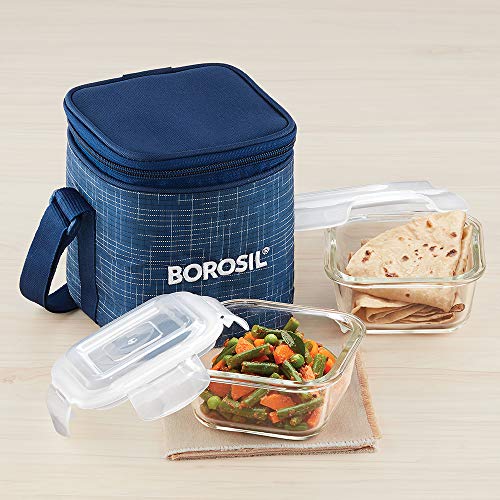Borosil Indigo Glass Lunch Box Set of 2 320 ml Vertical Microwave Safe Office Tiifin