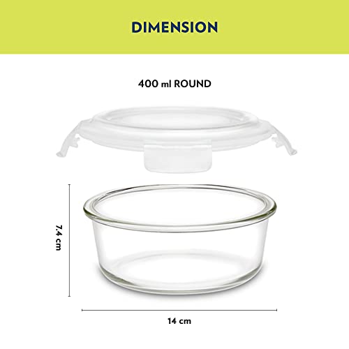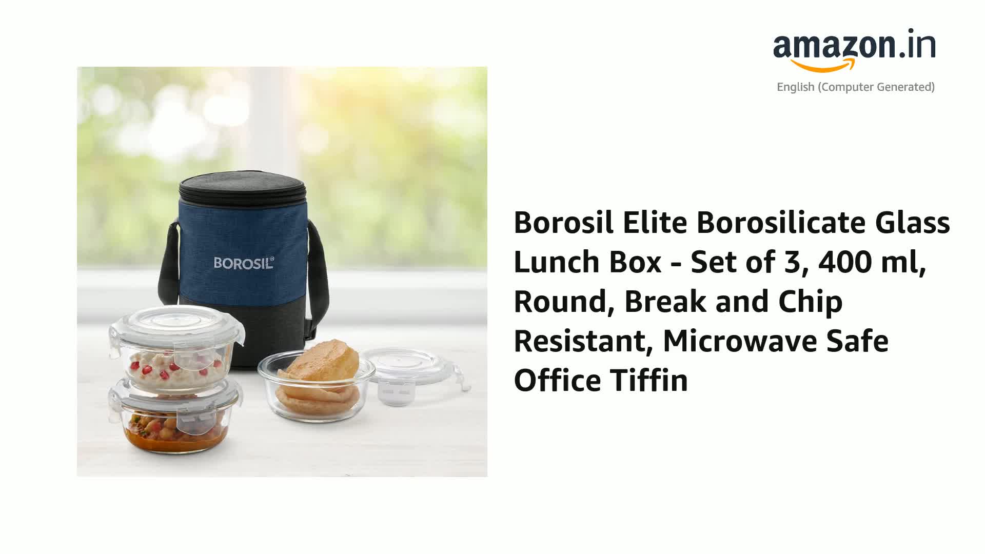 Borosil Elite Lunchbox, Set of 3 Round (400 ml Each), Leakproof, Borosilicate Glass Break and Chip Resistant, Microwave Safe Office Tiffin