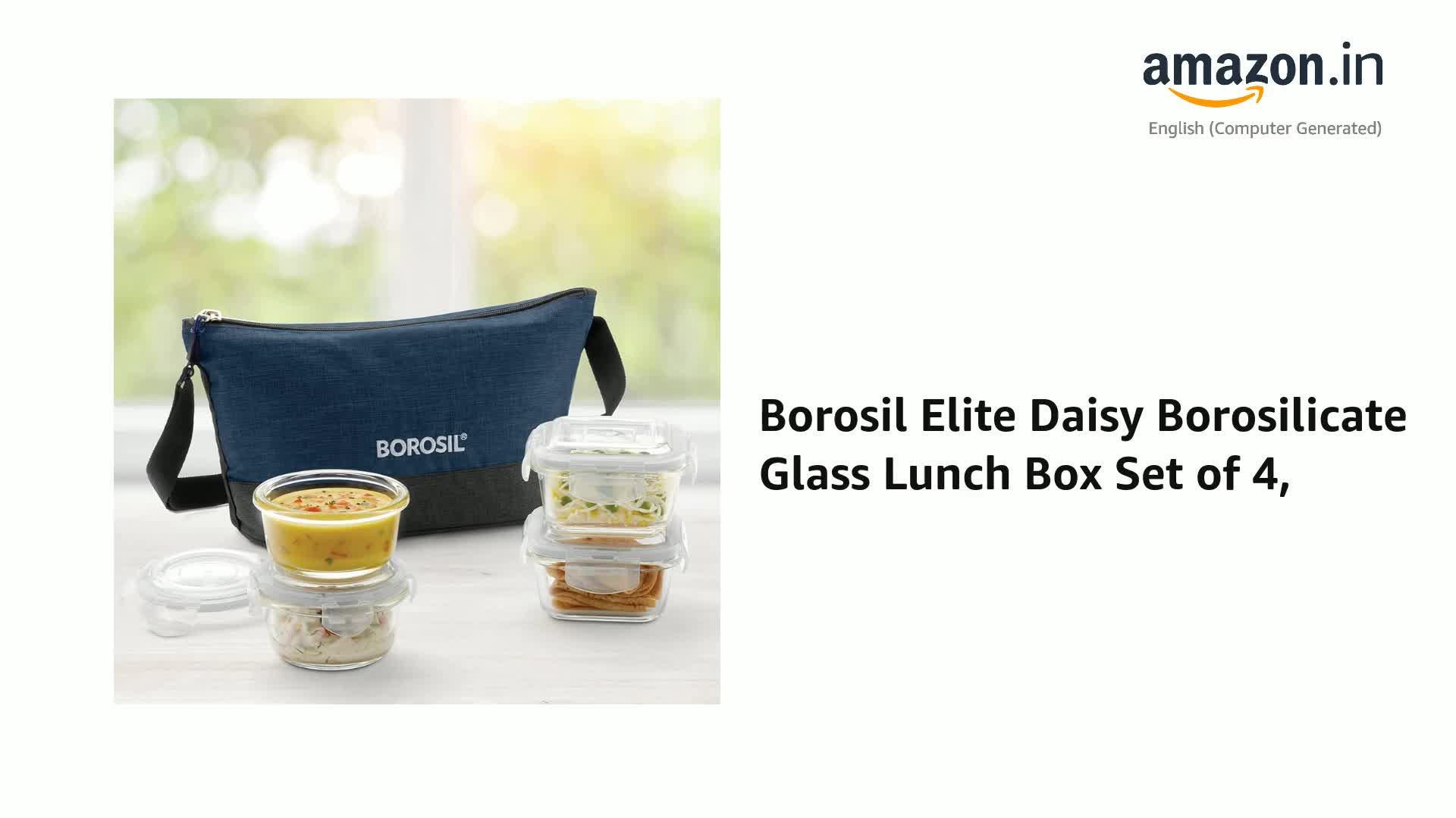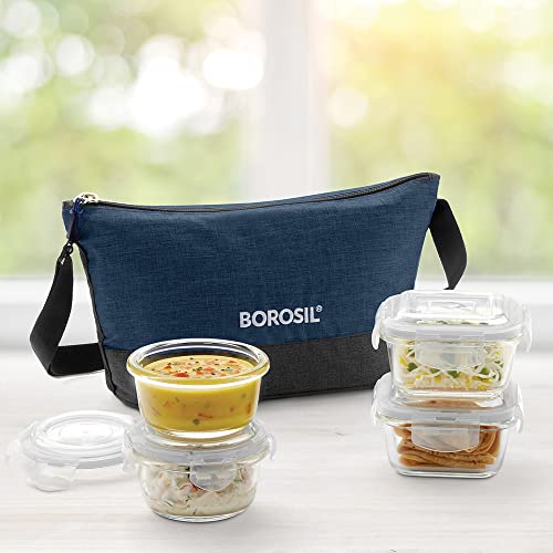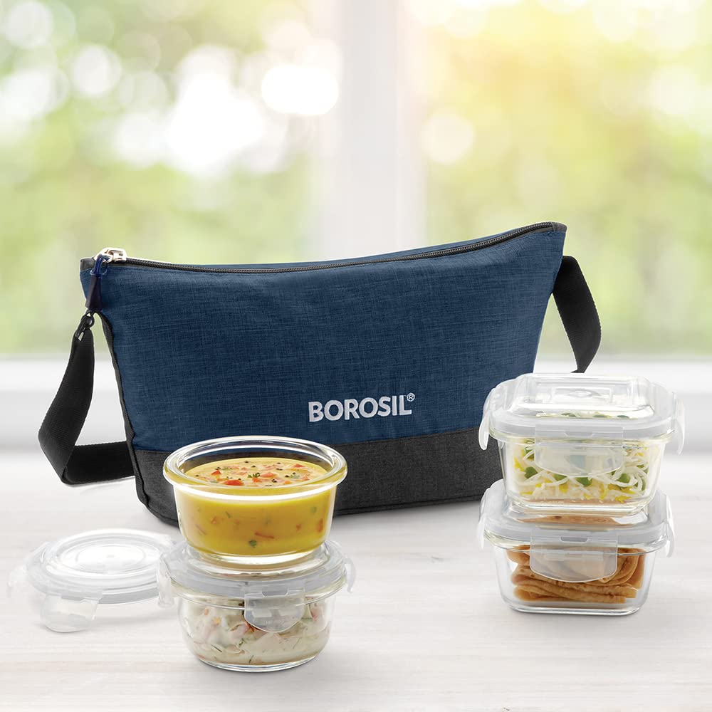 • Materia type: Borosilicate Glass; No. of containers: 4; Capacity of containers: 2 Containers: 320ml Each + 2 Containers: 240ml Each; Contents include: 2 Containers (320ml Each) + 2 Containers (240ml Each) + Lunch Bag; Container Colour: Transparent