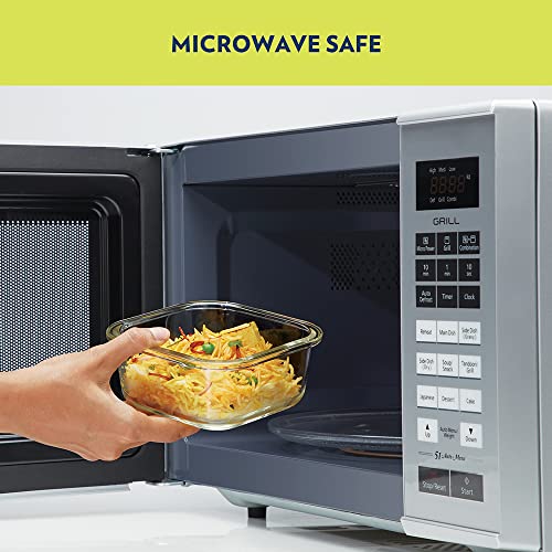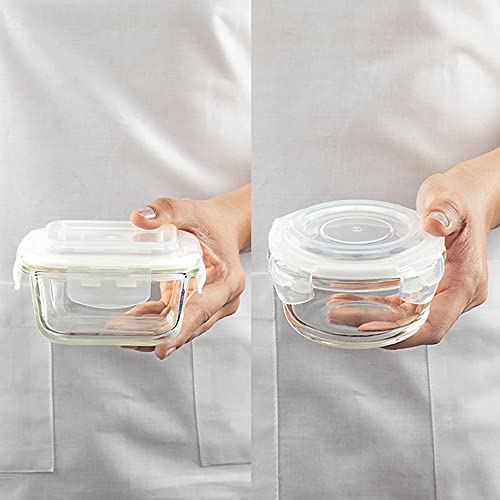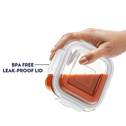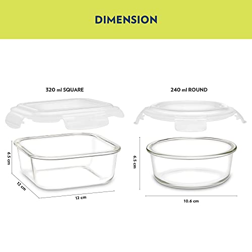 Borosil Elite Daisy Borosilicate Glass Lunch Box Set of 4, (320 ml Sq. + 240 ml Round) Break and Chip Resistant, Microwave Safe Office Tiffin
