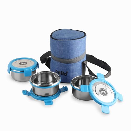 Cello Stainless Steel Lunch Box a designer and stainless steel lunchbox for carrying warm and fresh home-cooked meals. Fresh tasty and healthy - our carry fresh lunch boxes ensure that your food looks tastes and smells just as it did while it was lovingly prepared. The leak proof containers are ideal for carrying dals and sabjis. These lunch boxes are tough sturdy and made of 100% food grade materials which do not leach and bleed into your food even when packed with fresh hot meals; preserving their original taste and aroma all day long. The stainless steel containers are airtight and leak proof. The lid of the containers consists of food grade silicon seal that locks in the freshness retains the moisture of the food for long hours and prevents food spillage.