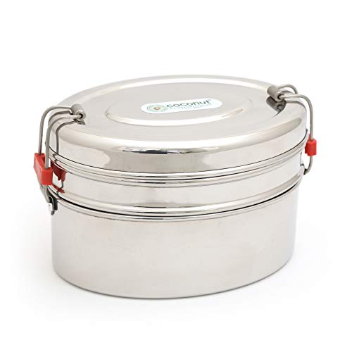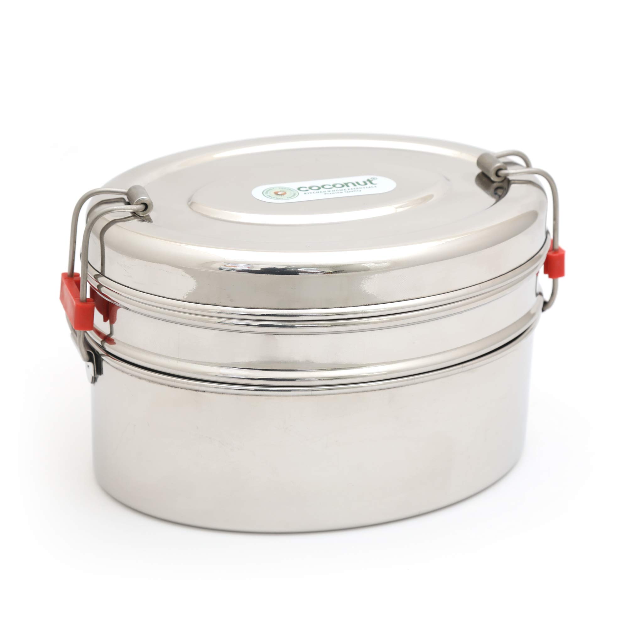 Coconut Stainless Steel Food Carrier Oval Double Lunch Box/Tiffen Box Medium - 1 Unit