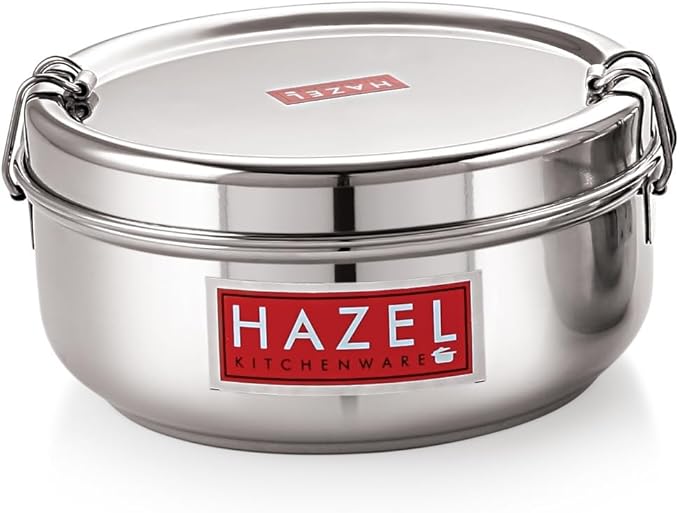 HomeKitchenContainersLunch BoxesHAZEL Stainless Steel Tiffin Box with Inner Plate | 350 ml Small Lunch Box for Office & Travel | Compact Steel Food Storage Container with Lid