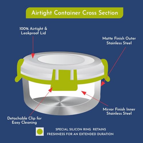 Air-Tight Seal for Freshness: Experience the reliability of our air-tight design equipped with a secure clip-lock lid and a silicone sealing ring. This ensures your meals remain fresh and appetizing whether you're at work school or enjoying a day out.