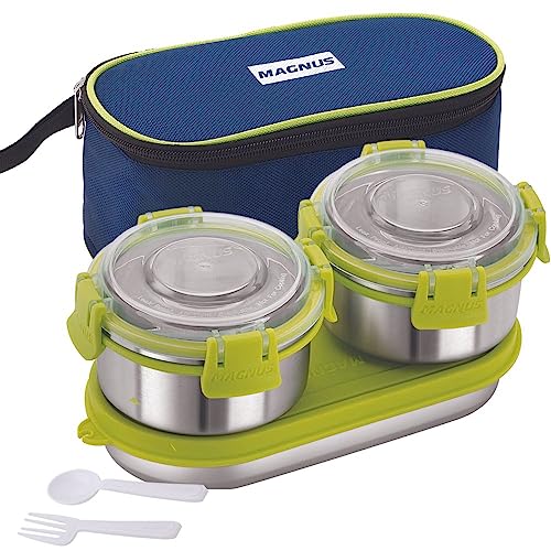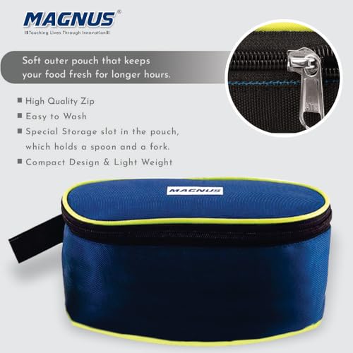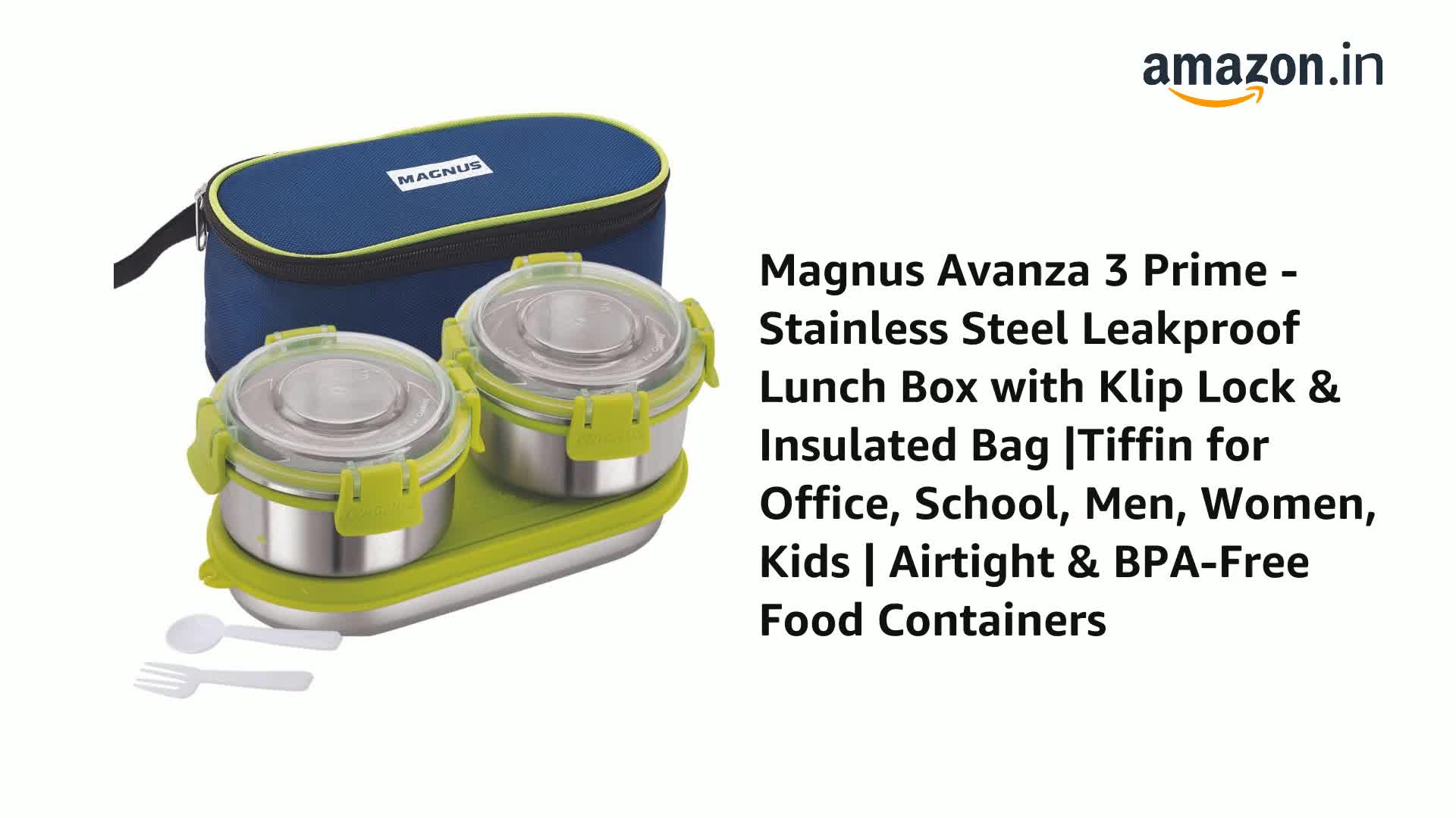 Magnus Avanza 3 Prime - Stainless Steel Leakproof Lunch Box with Klip Lock & Insulated Bag |Tiffin for Office, School, Men, Women, Kids | Airtight & BPA-Free Food Containers