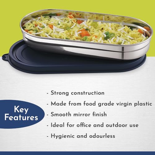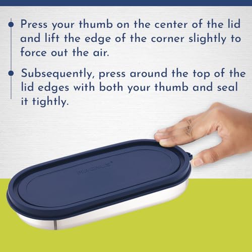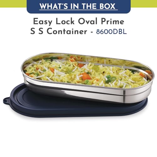 Magnus Easy Lock Oval Prime Container, Stainless Steel, Airtight & Leakproof Lid & Container, for School, Office Picnic, Ideal for Men,Women and Kids (Dark Blue,450ml)