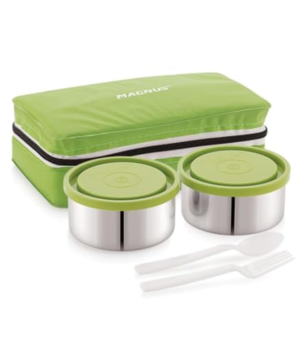 HomeKitchenContainersLunch BoxesMagnus Fancy 2 Prime Steel Lunch Box Set | Leak-Proof Containers for Office & School | 1050ml | Lunch Bag for Men, Women | Lunch Box for Kids | Lunch Boxes for Office Men | Stylish Design (Green)