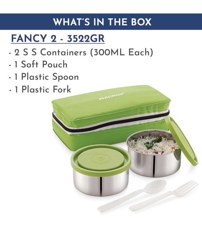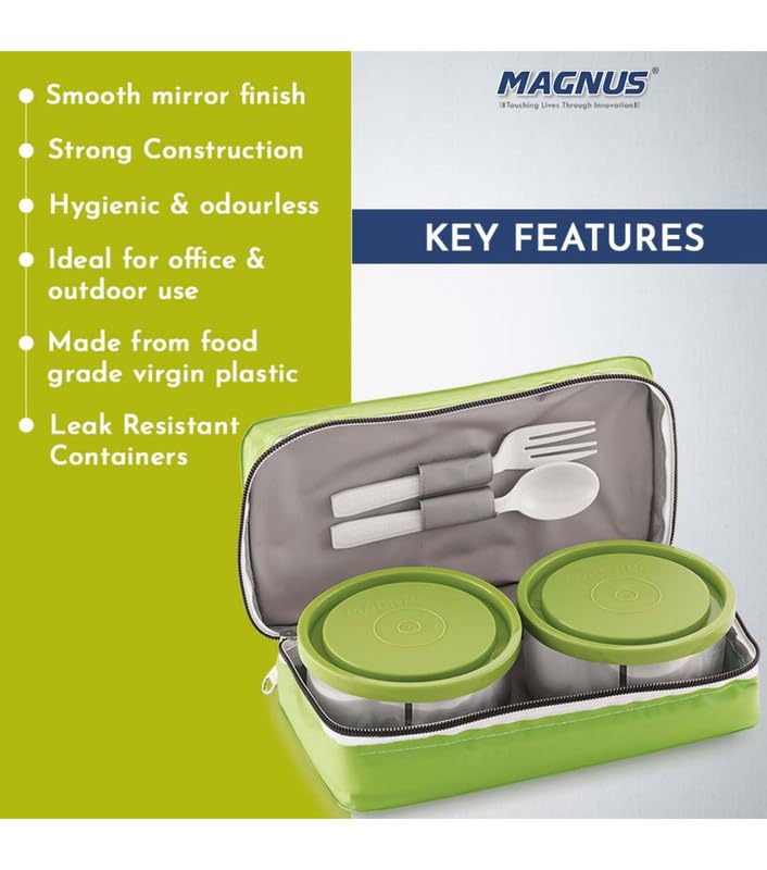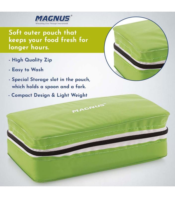 Magnus Fancy 2 Prime Steel Lunch Box Set | Leak-Proof Containers for Office & School | 1050ml | Lunch Bag for Men Women | Lunch Box for Kids | Lunch Boxes for Office Men | Stylish Design (Green)