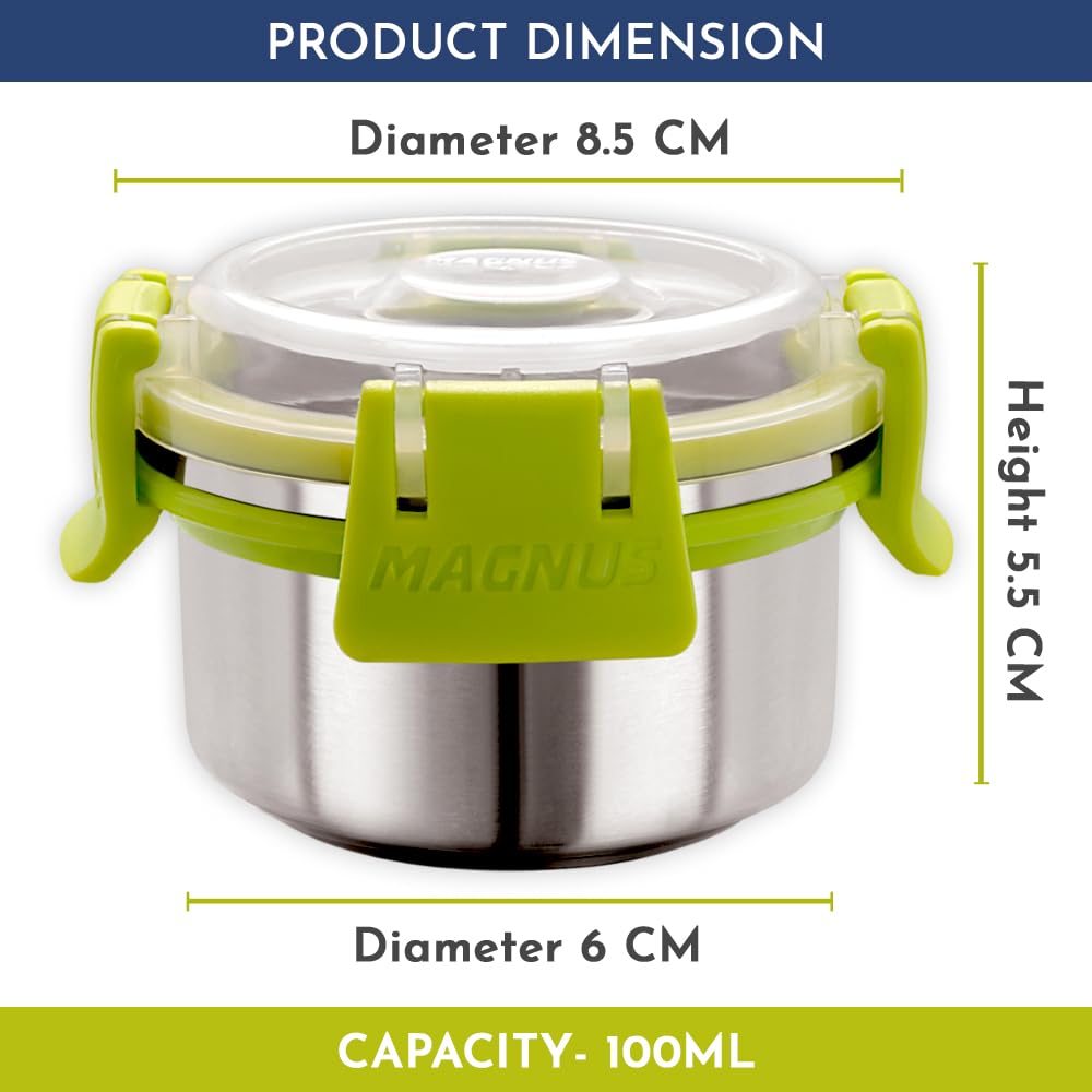 Magnus Klip Lock Stainless Steel Airtight Leakproof Storage Container 100ML - Ideal Kitchen Accessories Items Lunch Box Lunch Boxes for Office Men