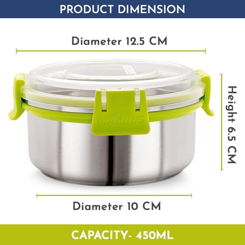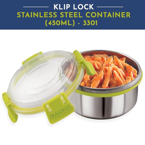 Magnus Klip Lock Stainless Steel Airtight Leakproof Storage Container 450ML - Premium Kitchen Accessories Items, Ideal Lunch Box for Office Men, Durable and Versatile