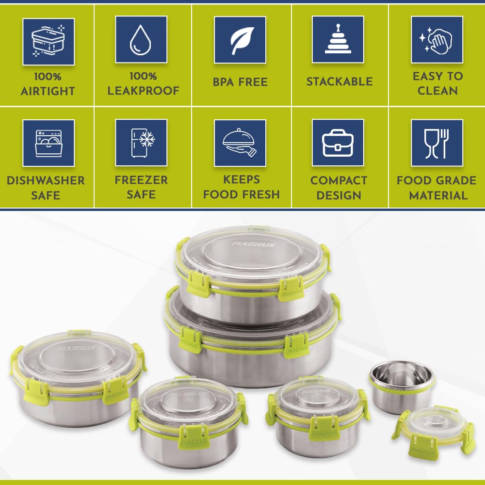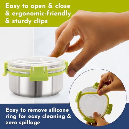 Stainless Steel Construction: Crafted from high-quality stainless steel our kitchen containers set offers durability and resistance to rust and stains. Perfect for use as a tiffin box for office for men and women and as a steel lunch box for kids.