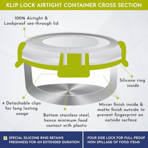 Magnus Klip Lock Stainless Steel Airtight Leakproof Storage Container 450ML - Premium Kitchen Accessories Items Ideal Lunch Box for Office Men Durable and Versatile