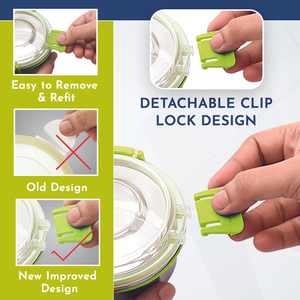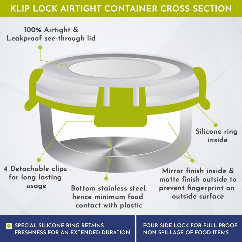 Klip Lock Mechanism: The Klip Lock mechanism ensures that the lunch box for kids remains securely closed providing an airtight and leakproof storage solution. Ideal for keeping food fresh and preventing spills in lunch boxes for office men and women.