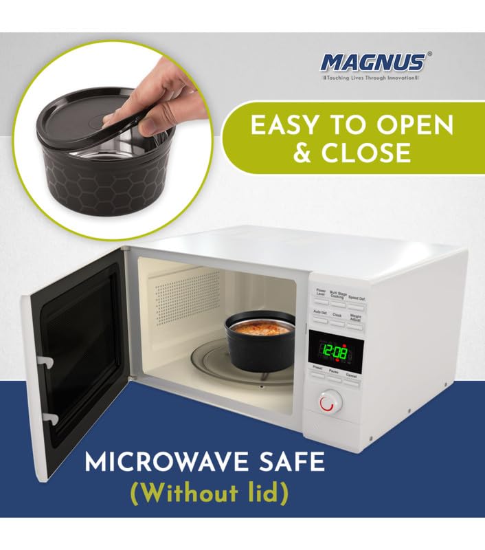 Leak-Proof Design: The Magnus Microwave Easy Lock Alfa-2 Stainless Steel Lunch Box Set ensures a leak-proof experience making it an ideal tiffin box for kids and adults alike. Perfect for tiffin box for office for men and women keeping meals fresh and spi