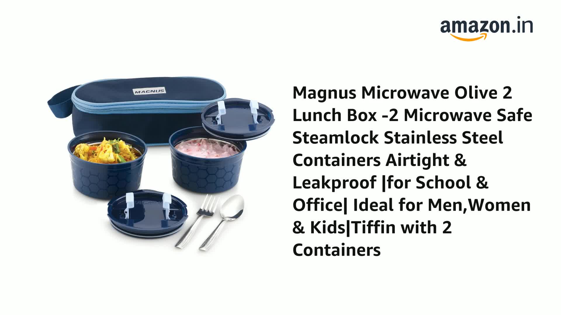 Microwave Safe Convenience: Magnus Microwave Olive 2 Lunch Box includes 2 microwave safe steamlock stainless steel containers perfect for easy reheating. Ideal as a tiffin box for kids tiffin box for office for men and lunch box for office women.